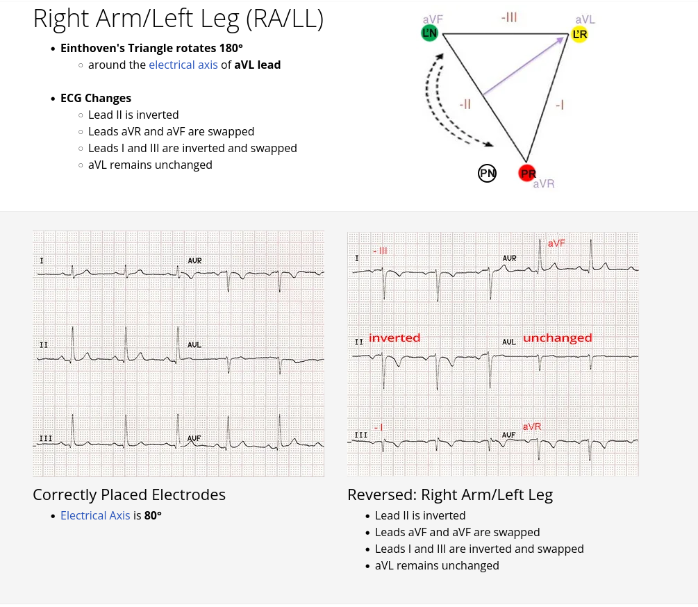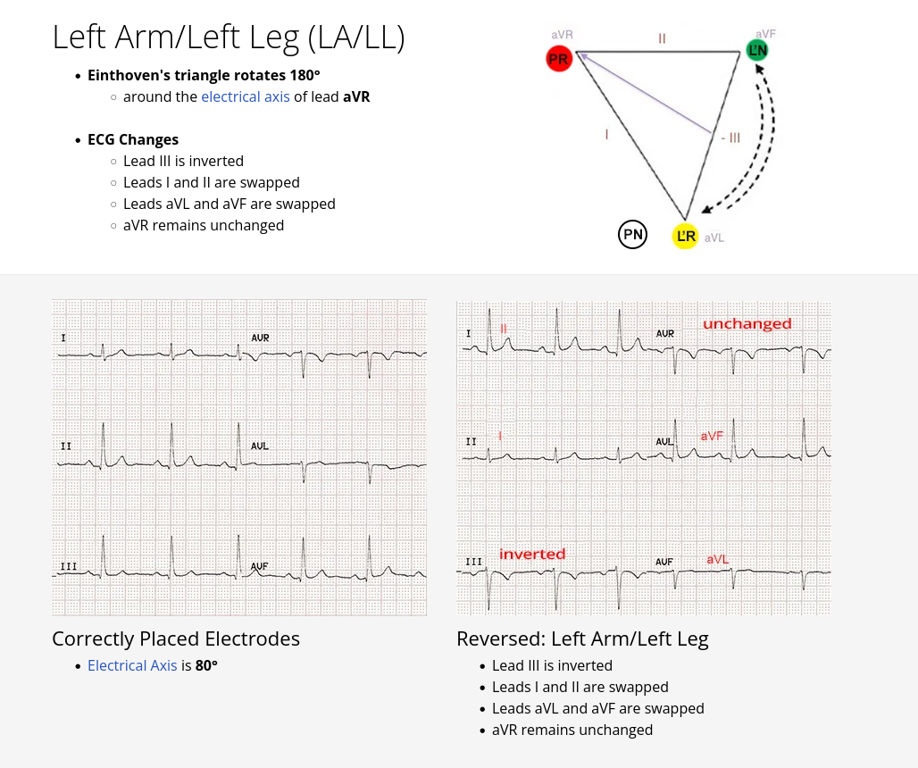 Misplaced Leads¶ Left arm & Right arm mispalced¶ Left arm & Left Leg misplaced¶ Right arm & Left leg misplaced¶ Right arm & Right leg¶