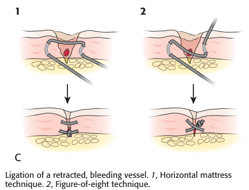 - use figure of 8 / horizontal matress stitch to compress the tissue therby control the vessel bleed