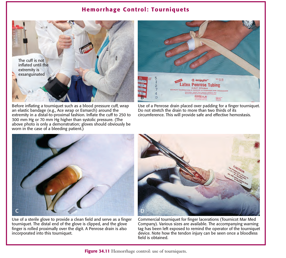 - Before tourniquet application elevate injured limb to prevent venous return ooze