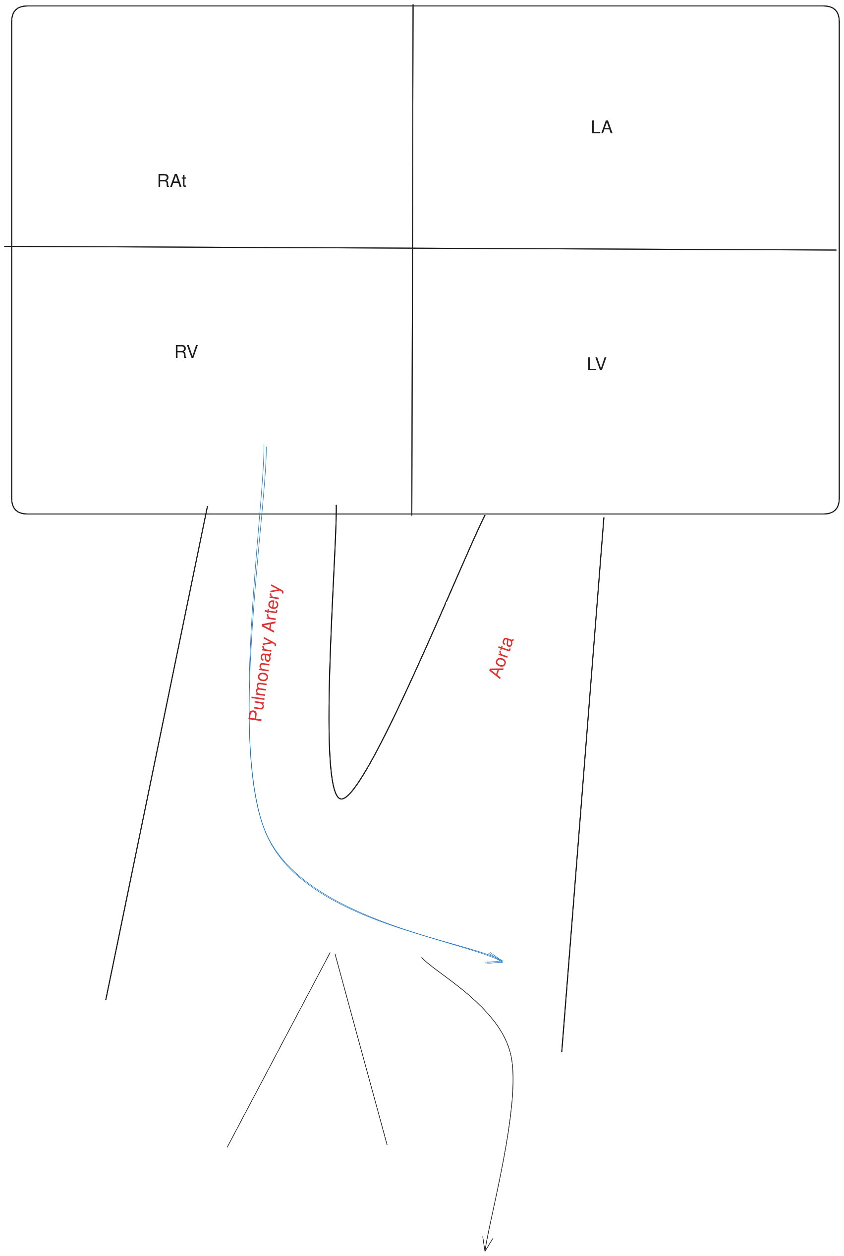 - VSD (blood from RV enters VSD into LV)