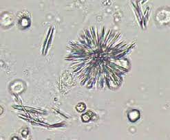 Casts and Crystals¶ 1.Crsytals¶ Cysteine Tyrosine Bilirubin Ammonium biurate Leucine Calcium Uric acid Triple Phosphate Choles 2.Casts¶ Normal RBC WBC Granular Brown muddy Broad Waxy