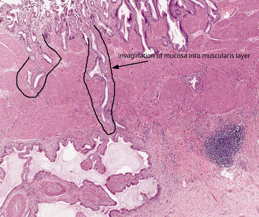 Rokitansky AschoS sinuses invagination of Mucosa into Muscuarlis layer due to pressure