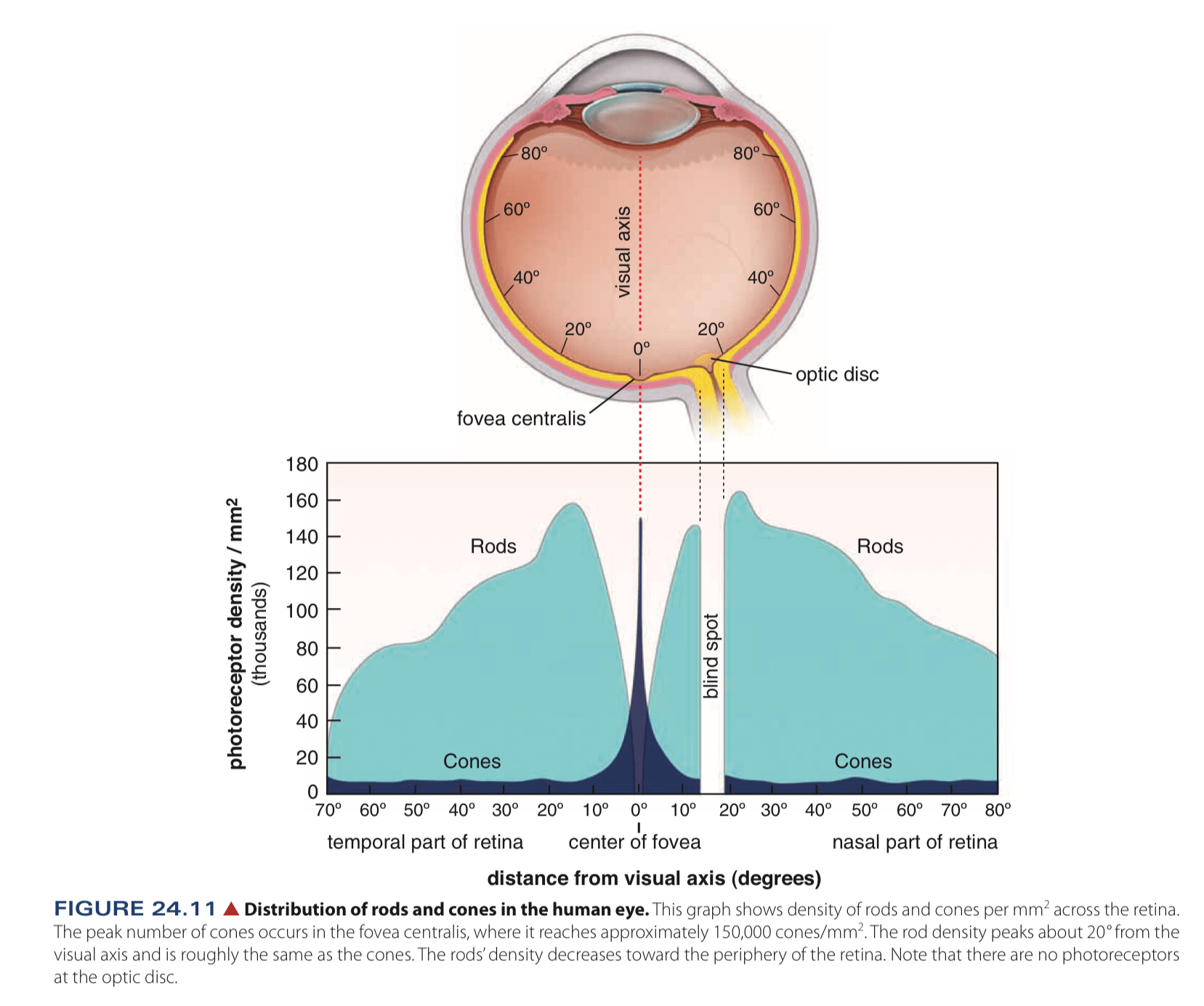 Rich in ROds cells , hinders of rods to one Ganglion Cell Light sensitive Night Vision !!! "Retinal Detachent" Separation Pigmented Epithelium from Neural Epithelium(from Cons/Rods layer)