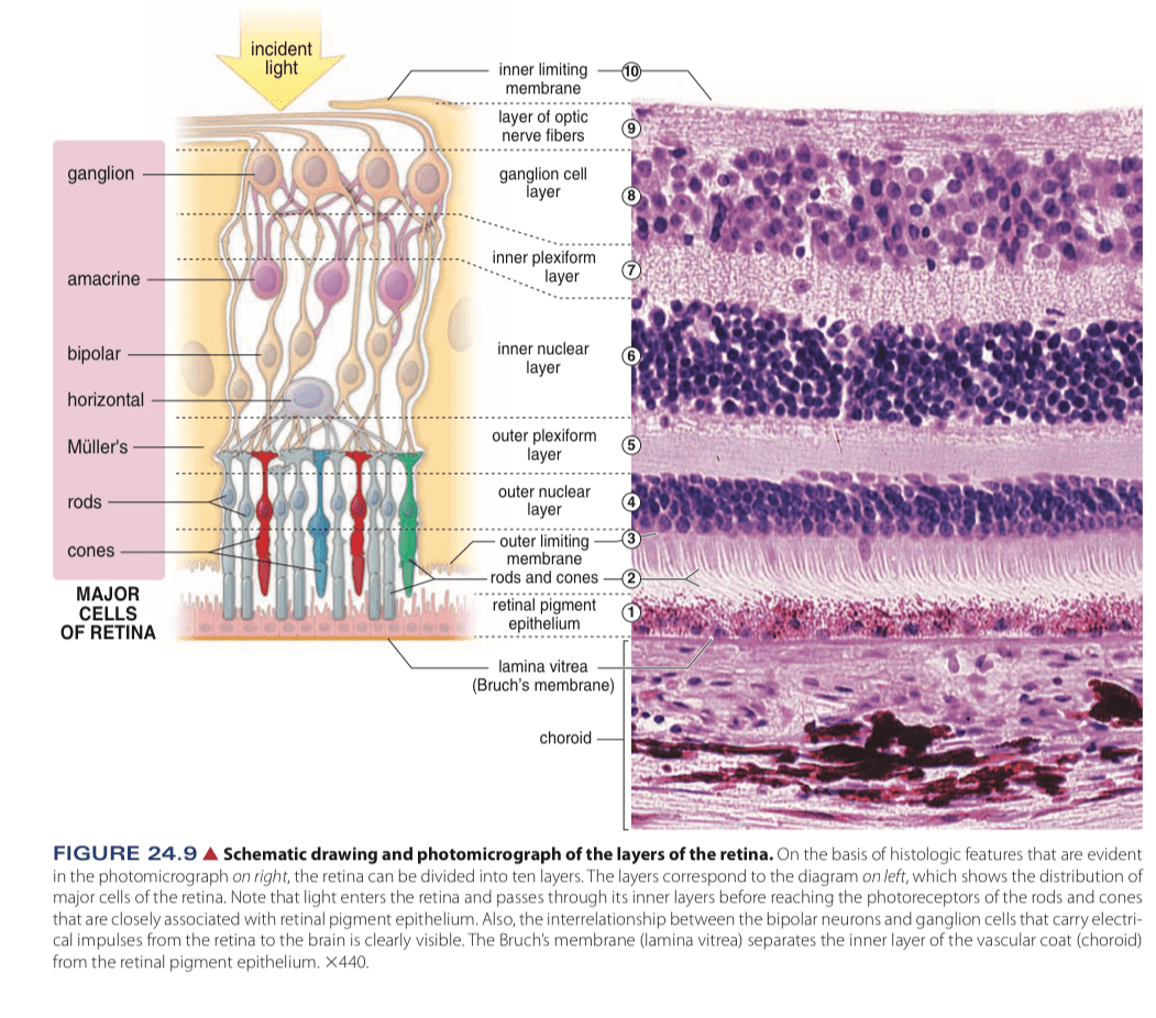 - Outer Plexiform layer (axons of Cons/rods and Bipolar neuron's joining)