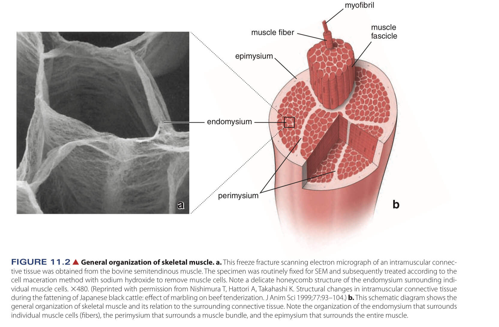 X{myofibre = single SKM cells} -.->|Covered by | X1[Endomesium,Loose Connective Tissue];