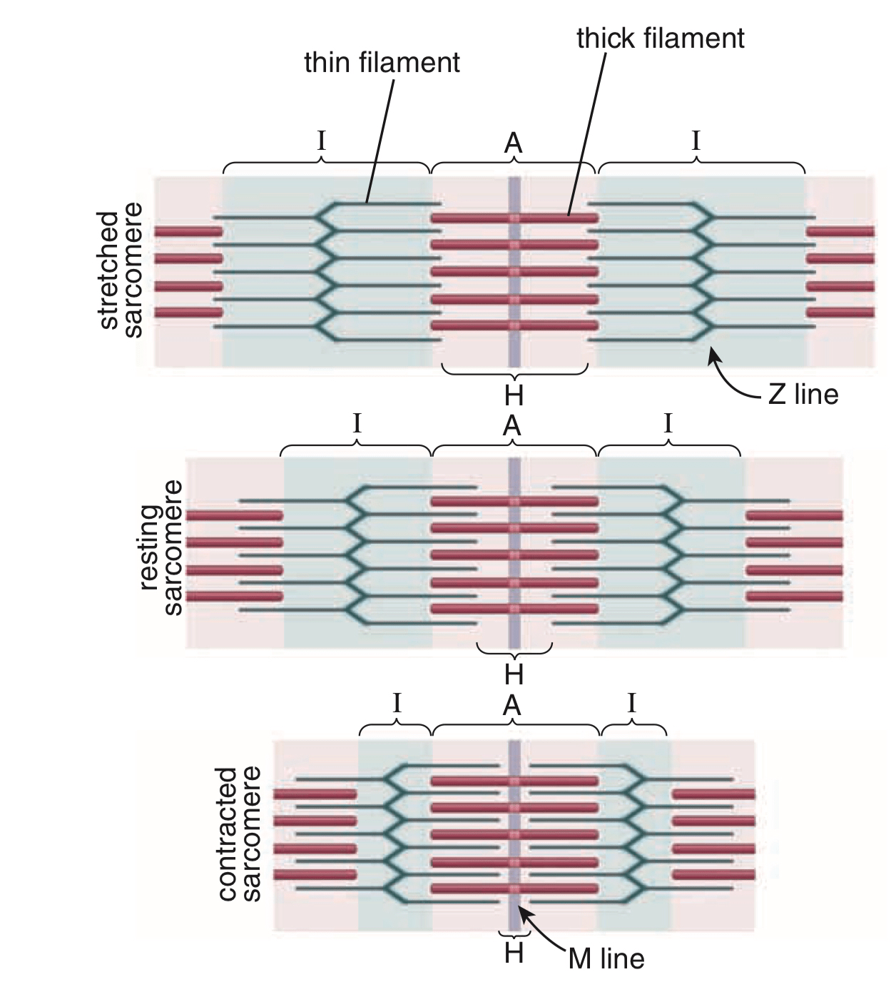 - I band(i can contract ) = Actin not attached to Myosin
