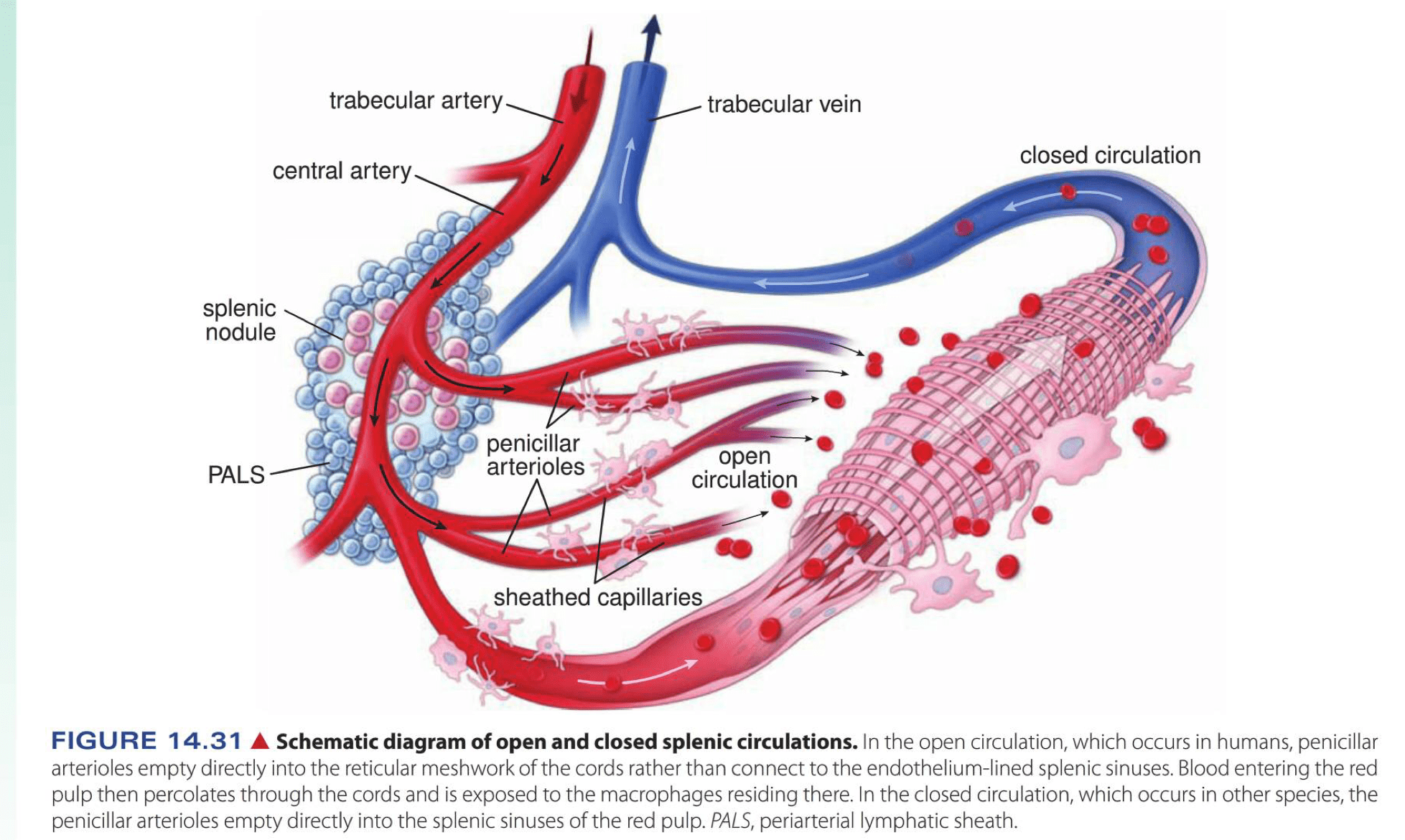 X3a ==> X3a11[Penicilliar arterials opens up to Splenic Cords rich in macropages];